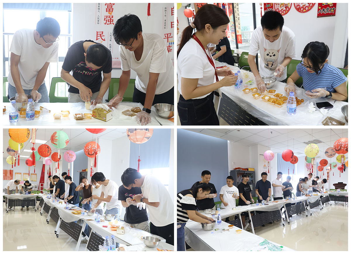 大家分工协作,有人揉搓面团,有人包裹馅料,还有人小心翼翼地将包好的月饼放入模具中压制成型。不一会儿,一个个造型精致、色彩缤纷的冰皮月饼便陆续出炉。现场特别设置了包装区,员工们将亲手制作的月饼细心包装,带回家与家人共享这份独具心意的中秋甜蜜。